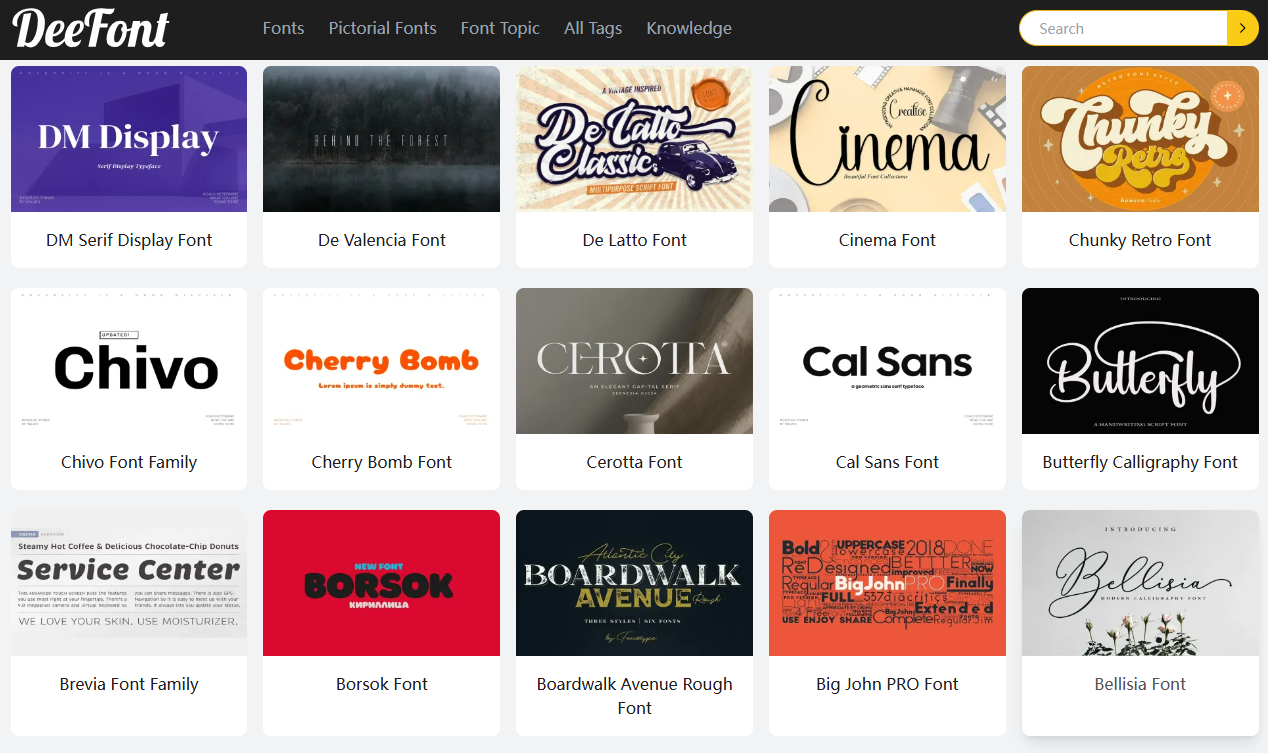 DeeFont.com is a popular online resource that caters to designers, artists, and anyone in need of unique typography. Established as a repository for free fonts, it boasts an extensive collection of over 89,500 fonts, including various styles such as script, fancy, and retro. The site is user-friendly, allowing visitors to easily browse through categories like "New Fonts," "Top Fonts," and "Authors," making it simple to find the perfect typeface for any project.